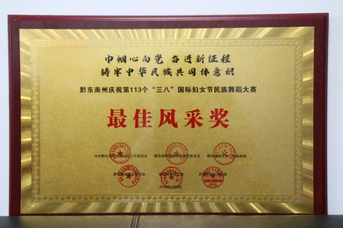 3月6日,黔東南州婦聯(lián)聯(lián)合州直機關(guān)工委、州民宗委、州文體廣電旅游局、州總工會、團州委共同舉辦的“巾幗心向黨 奮進新征程 鑄牢中華民族共同體意識”民族舞蹈大賽在凱里市下司鎮(zhèn)舉行,集團工會積極組建舞蹈隊參加比賽,榮獲最佳風(fēng)采獎。